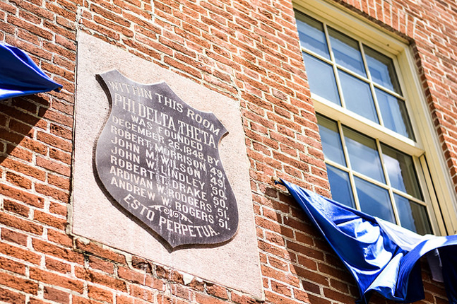 It was in this room that Phi Delta Theta’s vision became reality and where its six noble founders composed and signed the first Bond, handwritten and still preserved at General Headquarters, just a few blocks away. To this day, that same Bond is hand-copied for every new chapter, preserving as best it can the amazingly complex script of the early writers when cursive penmanship was an art form.