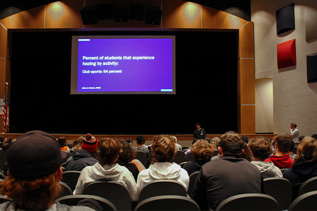 Throughout the presentation, students learned examples of hazing, how it starts, why it continues, and how students can make better decisions, build new traditions, and stop hazing before heading to college.