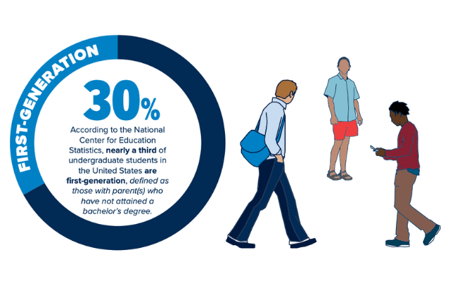 Primarily due to financial challenges, navigating unfamiliar environments, and a lack of on-campus mentorship, retention and graduation rates for first-generation college students are significantly lower than for students with parents who attended college.