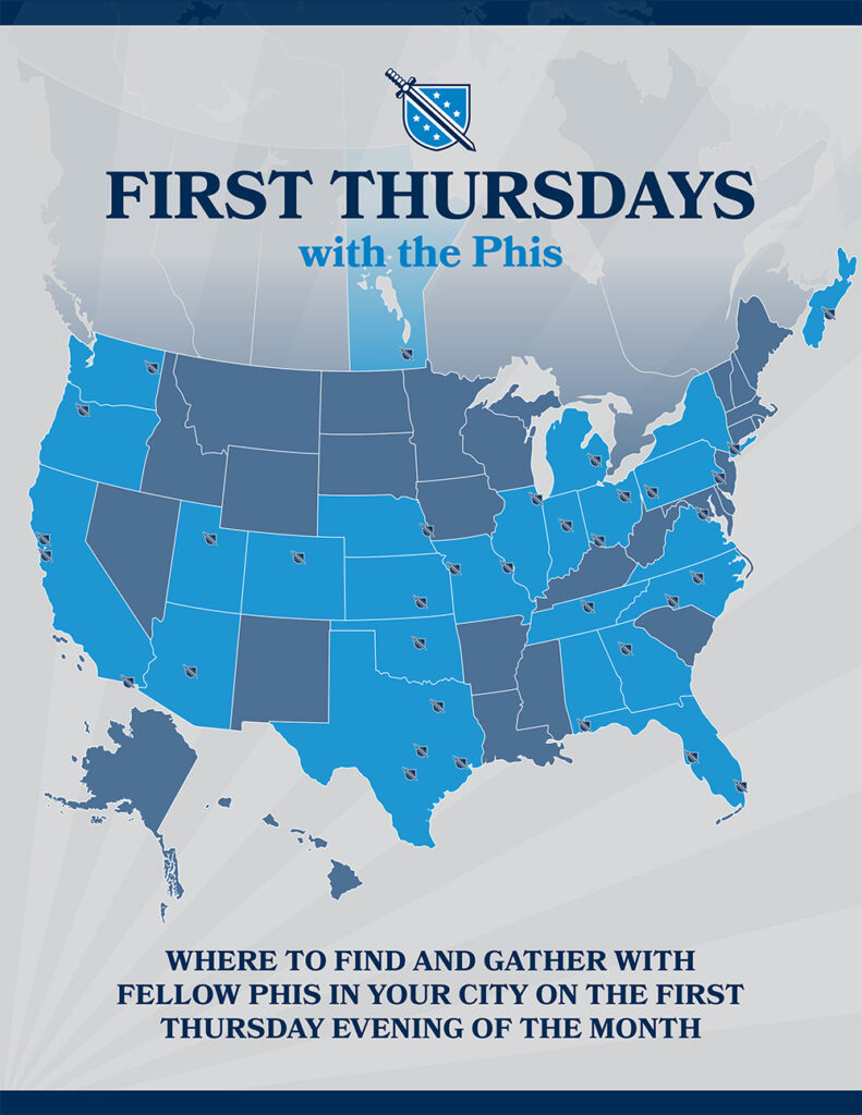 Gather with fellow Phi Delts at a First Thursdays with the Phis location – On Lou Gehrig Day (June 2), Phi Delts will gather at 6 p.m. at thirty-five First Thursdays with the Phis locations across North America. Round up your Phi Delt crew in your city and join other Phis doing the same for these casual gatherings filled with brotherhood.