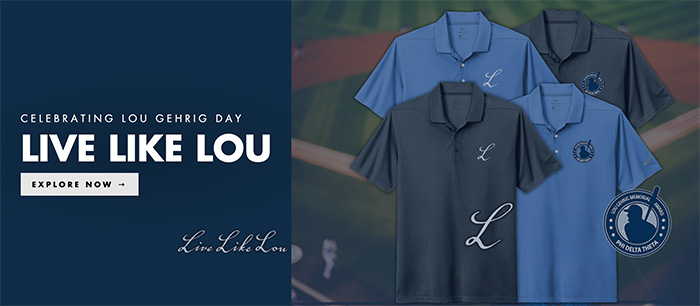 Sport some gear – Purchase Lou Gehrig related items at the Phi Delt Store that benefit the LiveLikeLou Foundation. The MLB Shop also has a great shirt for sale.
