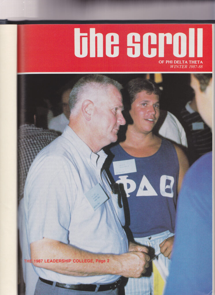 For the first recap written by Robert A. Biggs, Georgia Southern ’76, in The Scroll of the very first Leadership College, see this 1987 issue of The Scroll of Phi Delta Theta for coverage of the earliest known institute, called Leadership College back then.