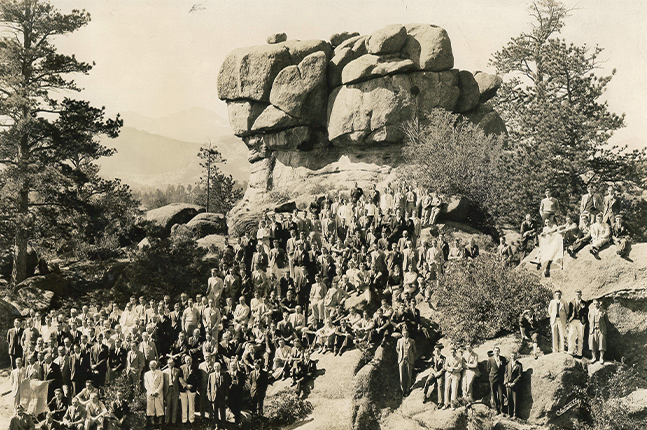 See this 1932 photo of the group of Phi Delta Theta members and guests in the beautiful Colorado Hills.