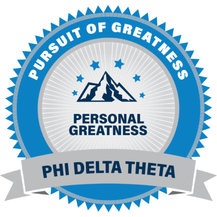 Phi Delta Theta members are part of a values-based leadership society of men with an unquenchable thirst for personal development and the lifelong values of Friendship, Sound Learning, and Rectitude. Earners of the Personal Greatness badge have mastered interpersonal skills such as resilience, values, self-awareness, and personal finance.