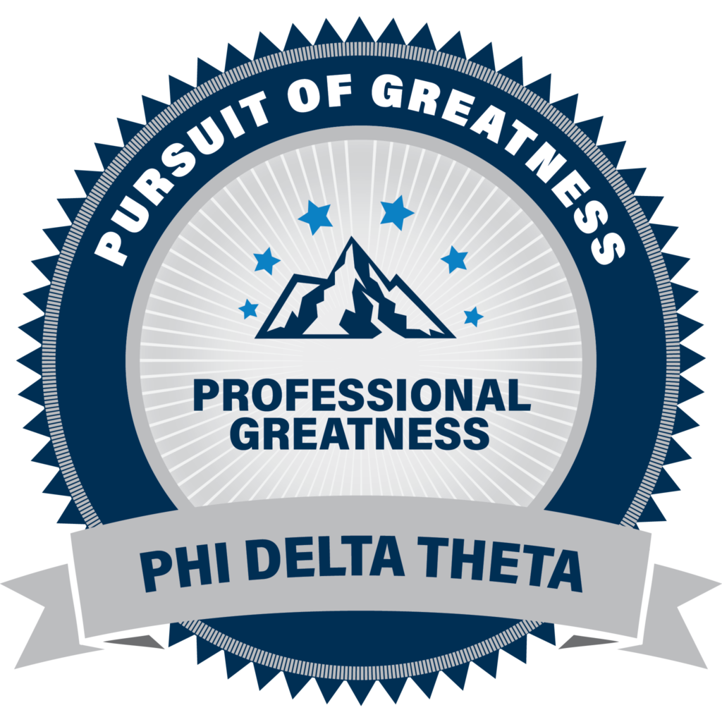 In addition to the proficiencies learned, members who complete the program will benefit by achieving Credly credentialed digital badges. Credly hosts the most extensive digital credentialed network and partners with such entities as Adobe, Oxford University, Procter & Gamble, Project Management Institute, and Hilton. Earning certified digital badges through the Pursuit of Greatness program helps undergraduate members share their Phi Delt experience with potential employers and explain how it is relevant to the opportunities they seek.